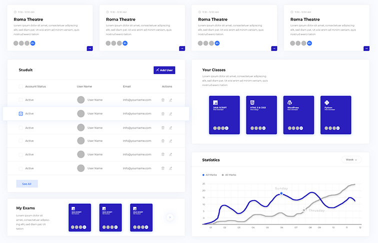 Personal calendar with the option to share. Public calendars for meeting rooms, resource reservations.